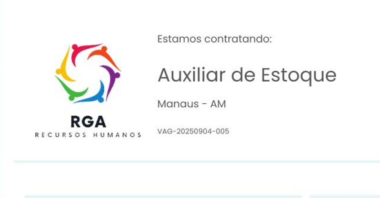 Continue lendoA RGA Recursos Humanos, especializada em recrutamento e seleção, está com novas oportunidades de emprego abertas em Manaus para profissionais
