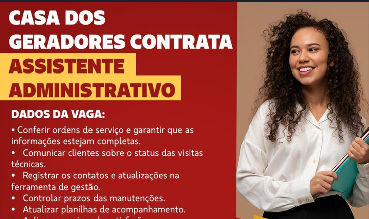 A Casa dos Geradores, empresa reconhecida no setor de energia e manutenção de geradores, está com vaga aberta para Assistente Administrativo em Manaus. Se você busca uma oportunidade de crescimento profissional em uma empresa sólida e com ambiente colaborativo, essa é a chance ideal.