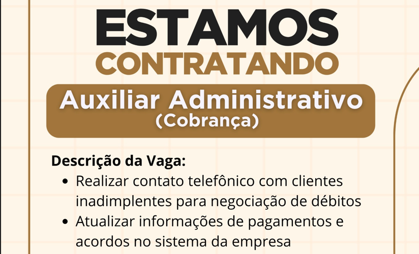 Continue lendoEmpresa do segmento imobiliário está com oportunidade aberta para Auxiliar Administrativo com foco em Cobrança, atuando diretamente no contato com